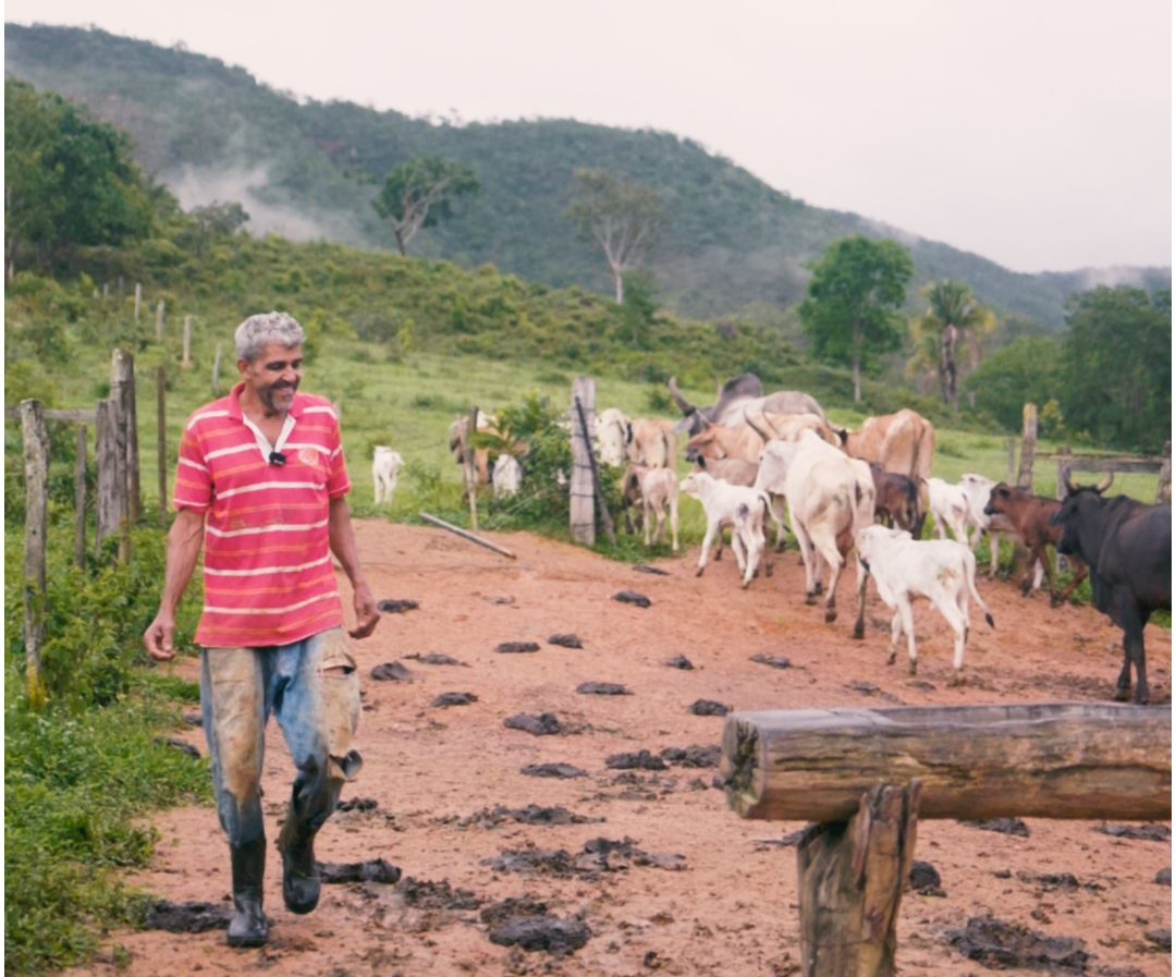 Nas chuvas, o gado se alimenta do pasto e ele aproveita para plantar milho orgânico.
